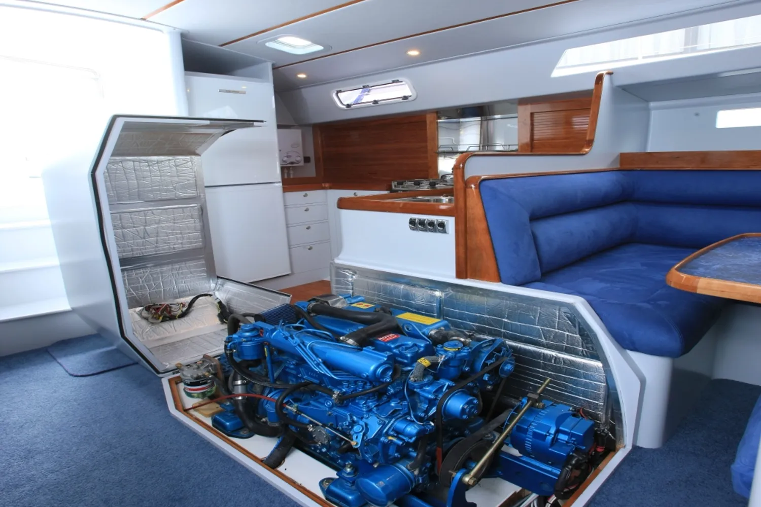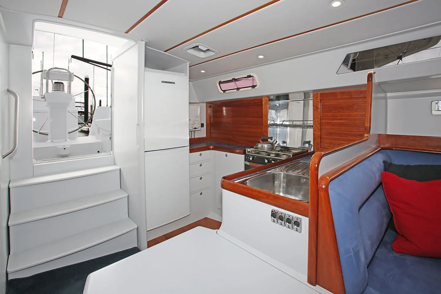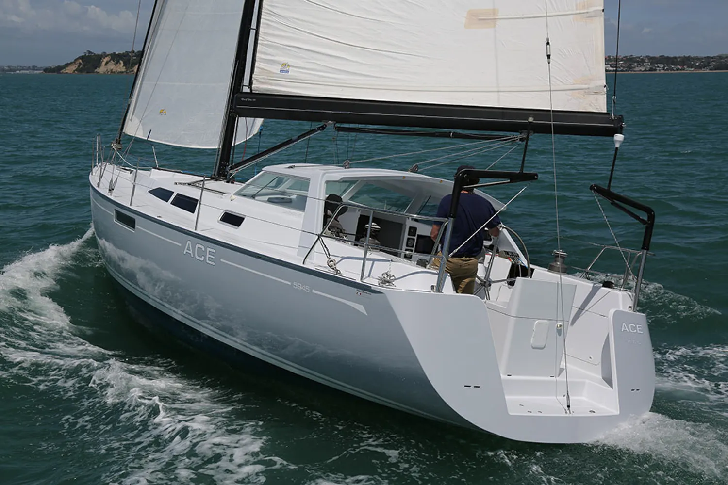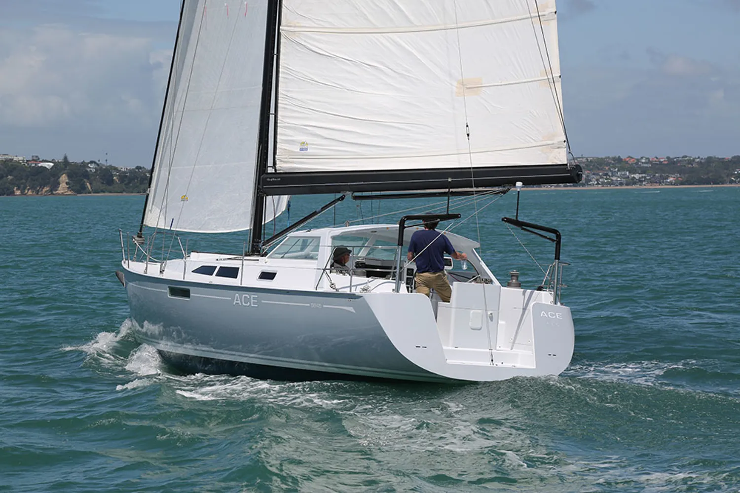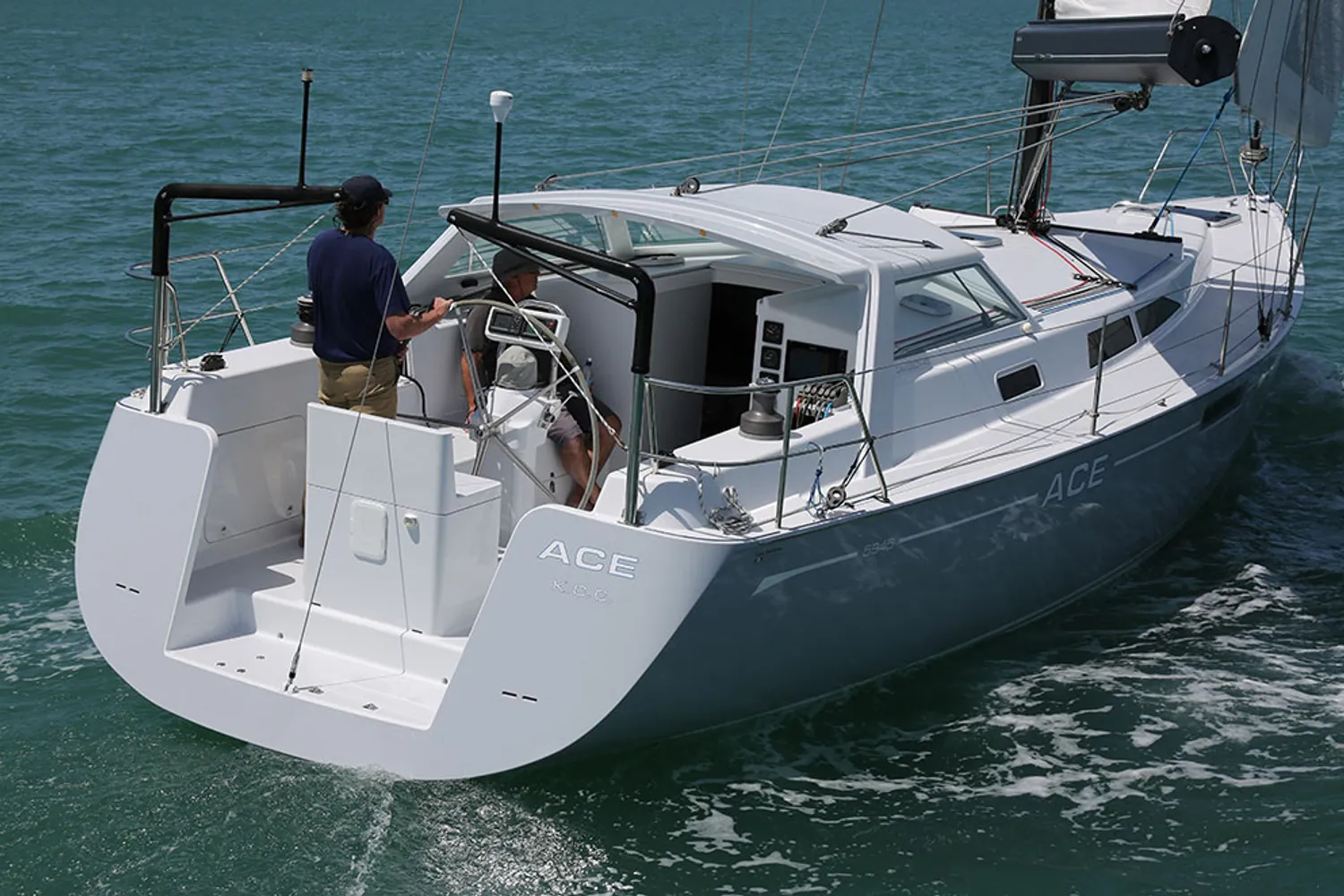 With a large interior volume for a 45-footer, Ace is an extremely comfortable and well-behaved cruising yacht. The hard dodger provides good shelter from the elements while the roller furling main and self-tacking jib make her a reasonably lightweight and well performed boat on and off the wind. She can be confidently sailed single-handed in relative comfort.