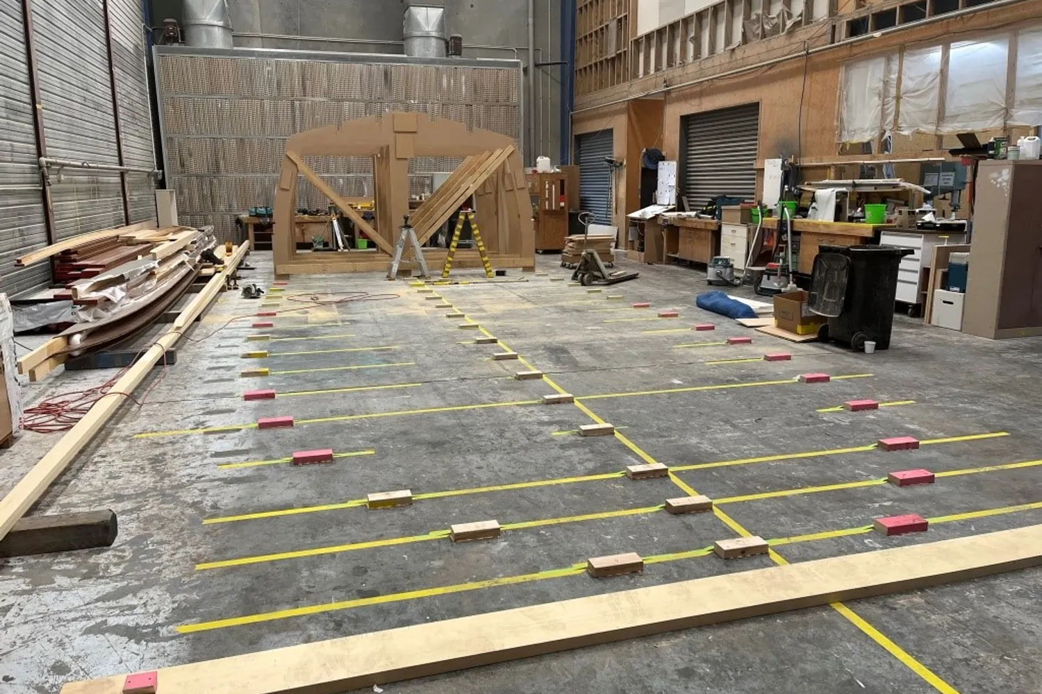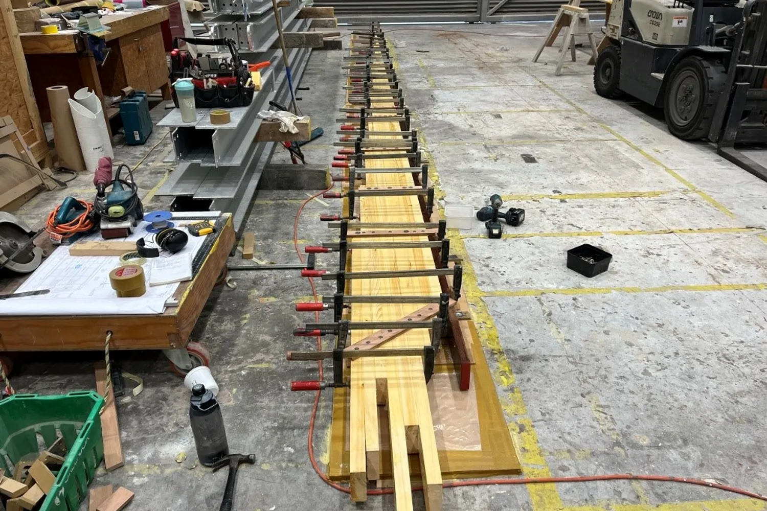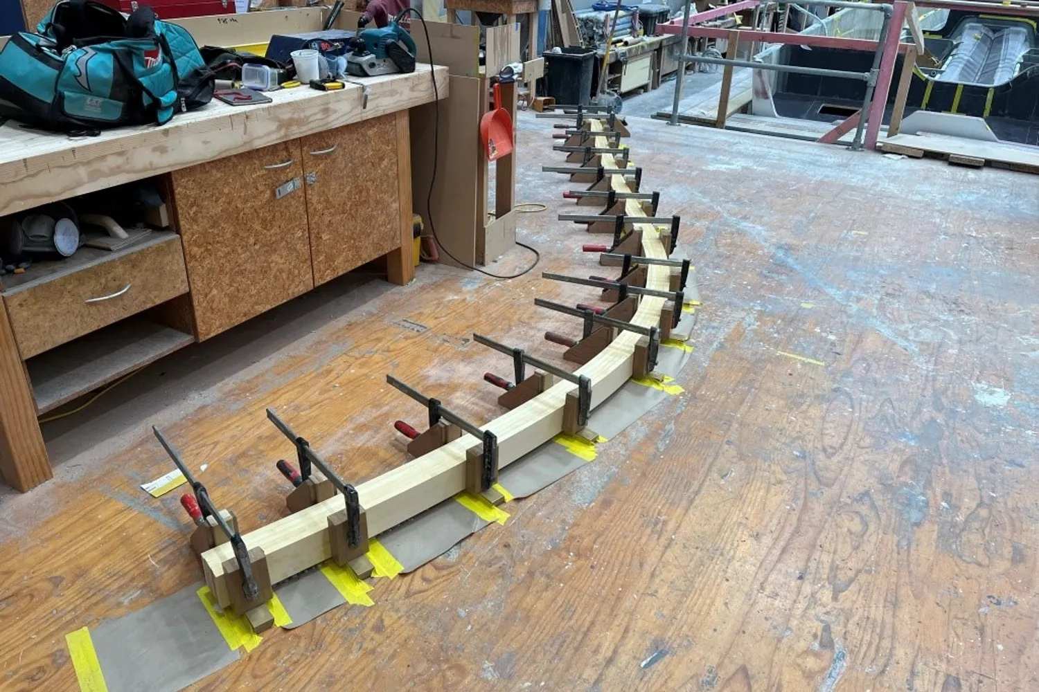 Keel being laminated. Note - First board on the right is the Hardwood Keel batten