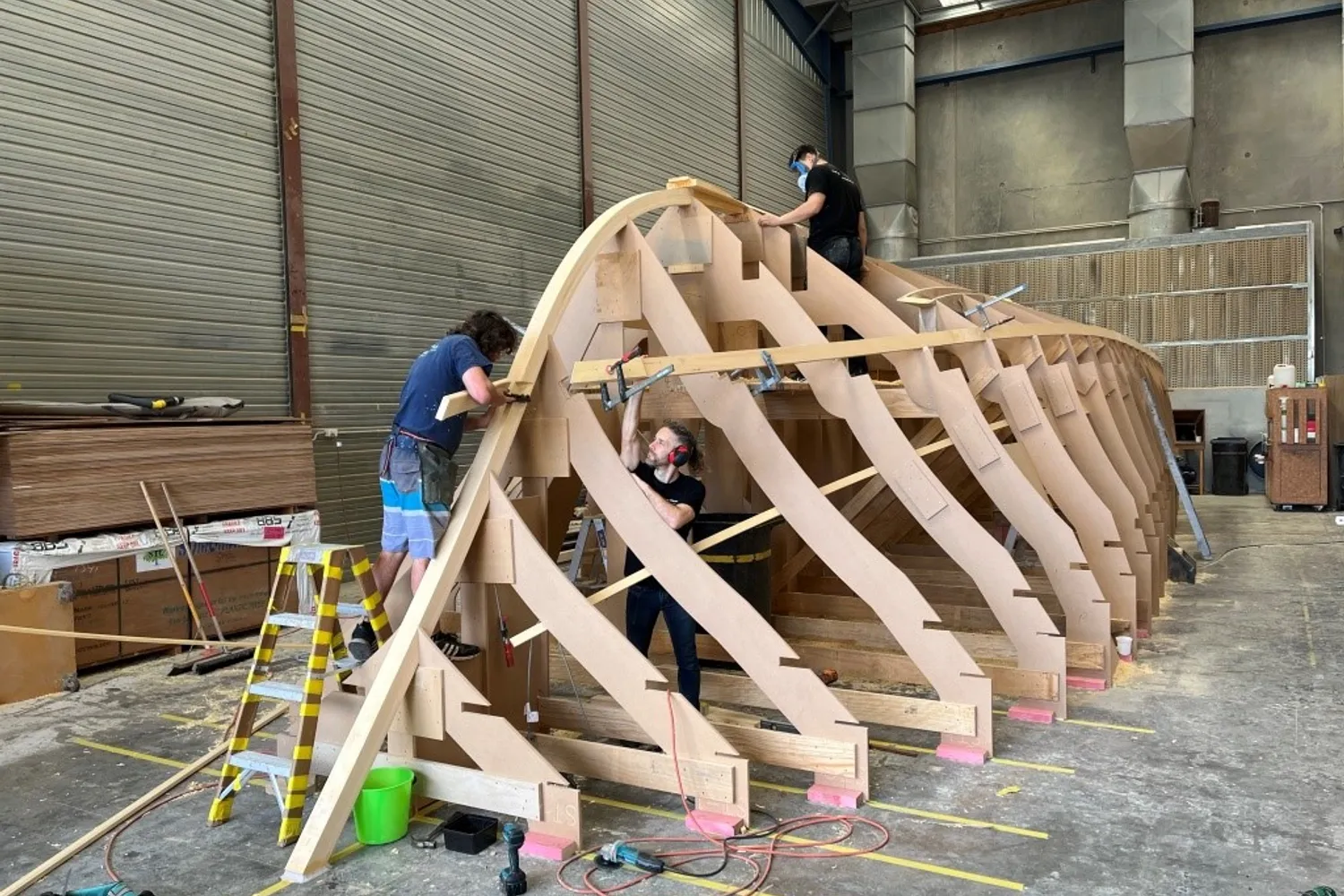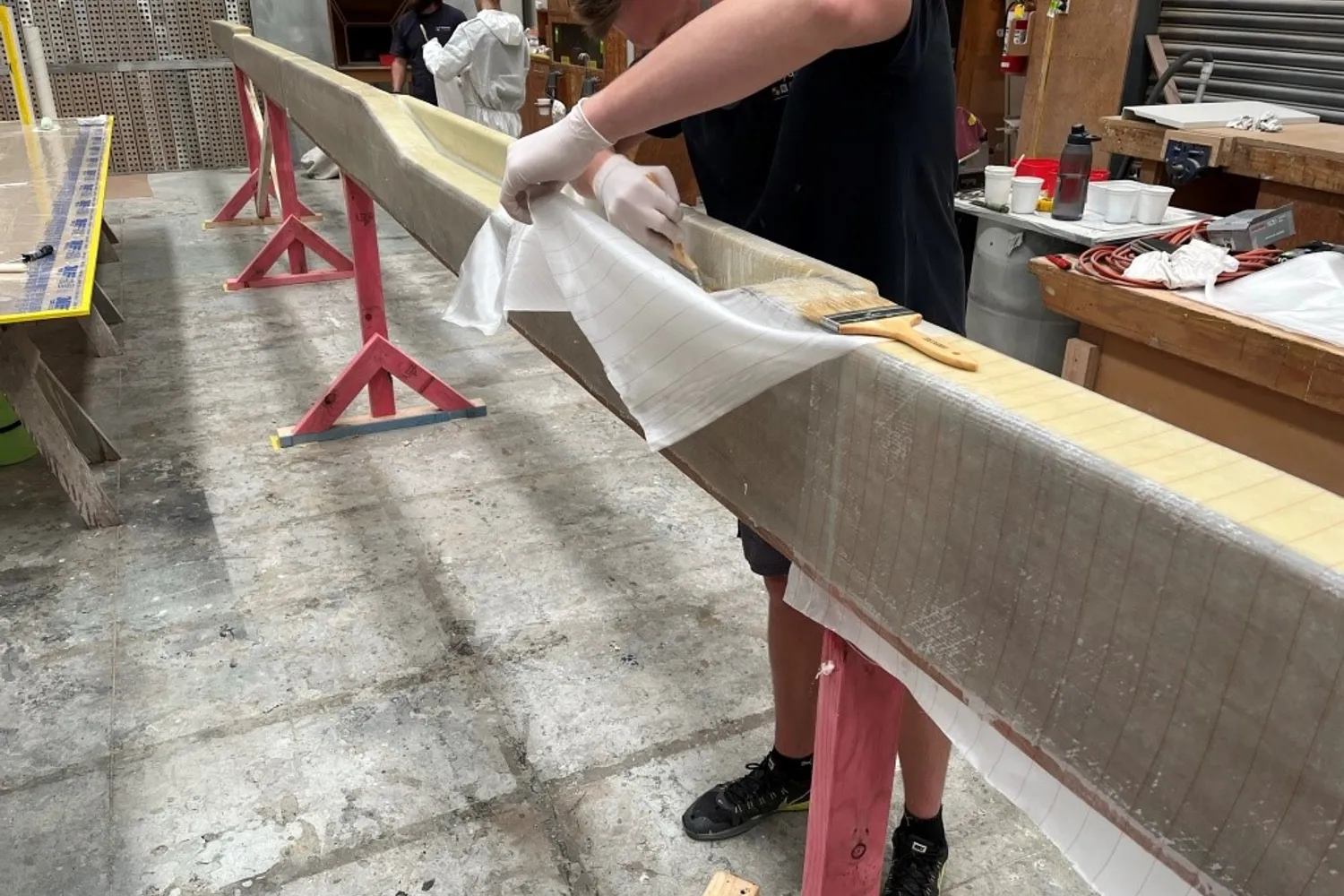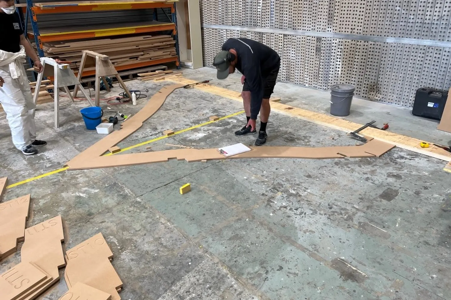 Keel being laminated. Note - First board on the right is the Hardwood Keel batten
