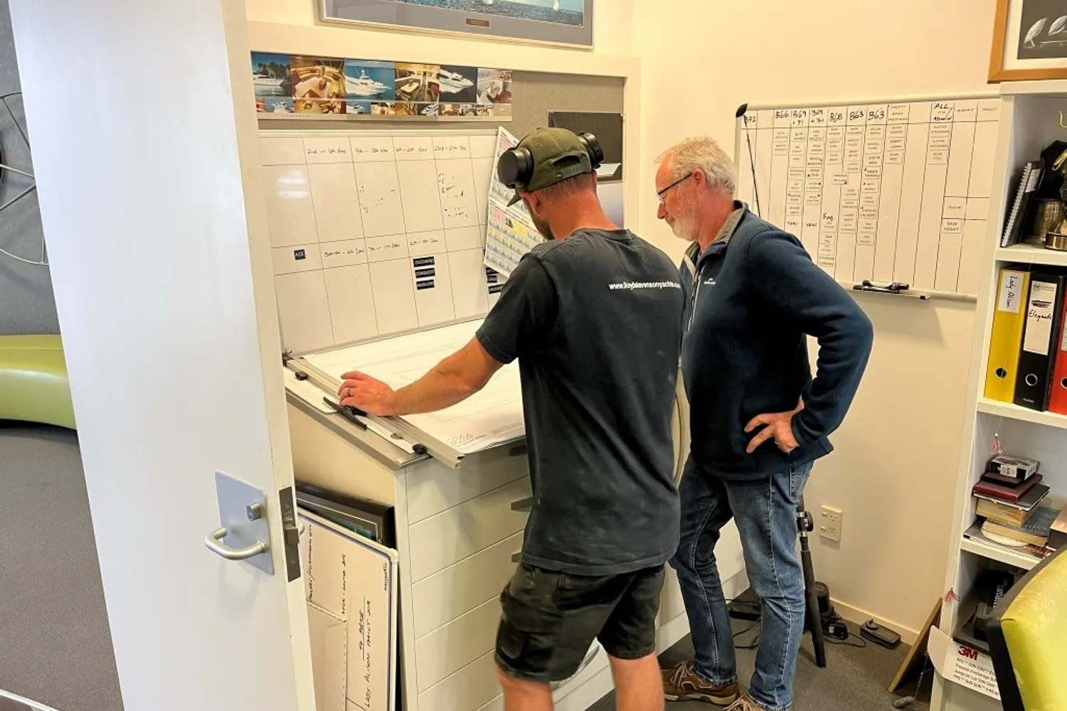 Bill (Designer) and Gareth (Team Leader) finalising some points before build commences
